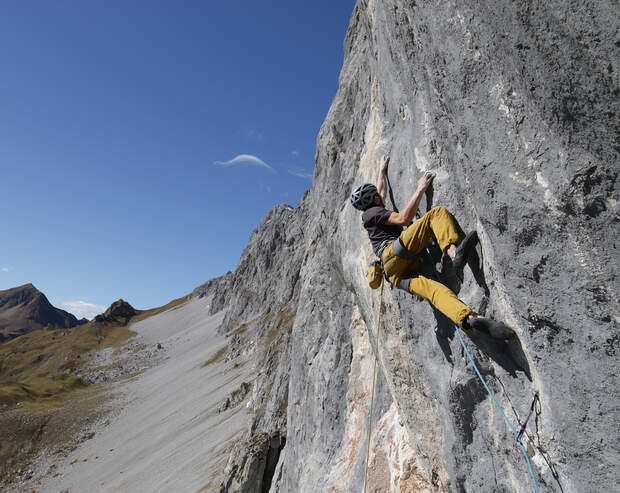 Auf alle Fälle. Leichtere Routen, auch im Klettergarten, die schön zu klettern sind und womöglich auch noch eine ästhetische Linie haben, haben meinen vollen Fokus. Beim ambitionierten Sportklettern sind aber schon manchmal Linien dabei, die ästhetisch nicht gerade herausragen. Die dann halt eine sportliche Anziehung haben. Das ist wie beim Fußball: Manchmal spielt die Mannschaft schlecht, aber das Ziel sind trotzdem die drei Punkte. Manchmal kann man auch ohne Glanz und Gloria den sportlichen Erfolg in den Vordergrund stellen. Aber zurück zu leichten Routen: Besonders im alpinen Bereich möchte ich auch nicht immer an mein Limit gehen. Da ist es ein Genuss, wenn man mal einen Dreier klettert, wo man die Zustiegsschuhe anlassen kann und der trotzdem exponiert ist und schöne Klettermeter bietet.