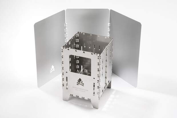 Der Bushbox Windschutz von Bushcraft Essentials besteht aus Aluminium und soll das Feuermachen auch bei schlechteren Wetterverhältnissen und Wind ermöglichen. Zusätzlich soll er Brennstoff sparen, da er das Feuer noch besser nach oben lenkt.