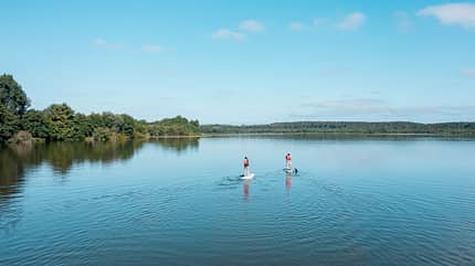 Die Region bietet für jeden Outdoor Spaß die perfekten Bedingungen. Z. B. Stand-up-Paddling auf ruhigen Seen.
