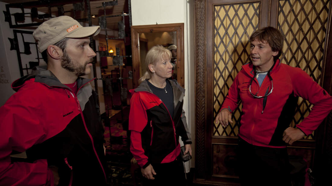 Doch im Rahmen des Mammut Peak Projects auf die Zinne zu steigen – darauf freuen sich auch die Profis. Wir stellen Fragen, viele Fragen, vielleicht einige mehr als vor einer harmloseren Unternehmung. Wie lange seid ihr schon Bergführer? Wie oft wart ihr schon oben auf der Zinne? Wie lange wird der Aufstieg dauern? Das Wetter sieht doch gut aus, oder? Ob uns unsere Nervosität anzumerken ist? Obwohl Uli, Suzana, Andre und Karin schon Bergerfahrung haben, ist auch für diese vier eine Tour auf die Große Zinne neu und aufregend.