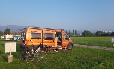 Gebührenpflichtiger Campingplatz für 450 Mobile am Ortsrand von Bregenz. Der Campingplatz liegt an einer Marina, in Bachnähe, in Seenähe, im Wald bzw. am Waldrand, an einer Sportstätte und auf einem für Reisemobile angelegten und ausgewiesenen Areal. Überwiegend ebener, teilweise schattiger Platz. Geschotterter Untergrund mit Schotterrasen, Wiese, Rasen. Zentrum zu Fuß erreichbar. ÖPNV-Anschluss in der Nähe. Am Platz: Platzwart, Brötchenservice, Shop, Campingshop, Restaurant, Biergarten, Kiosk, Imbiss, Fahrradverleih, E-Bike-Verleih, Stellplatz beleuchtet. In der Nähe: Altstadt, Freizeitpark, Kloster, Museen, Theater/Oper, Messe, Tierpark, Schloss/Burg, Strand, Therme/Heilbad, Naturschutzgebiet, ausgewiesene Fahrrad- und Wanderwege, Minigolf, Tennis, Angeln, Bootsverleih, Hafen/Marina, Kanufahren, Tauchen, Spielplatz. Preis pro Nacht: 24 EUR. Erwachsene Person: 12 EUR, Kind: 7 EUR. Kurtaxe pro erwachsener Person: 3 EUR. Bezahlung: Betreiber. Strom, Wasser, Entsorgung Grauwasser, Entsorgung Chemie-WC, WC, Dusche, WLAN, Hunde im Übernachtungspreis enthalten. V+E im Winter nicht verfügbar. Anreise zwischen 8 Uhr und 20 Uhr. Abreise bis spätestens 12 Uhr, spätere Abreise gegen Aufpreis möglich. Saison von Mitte Mai bis Mitte September.